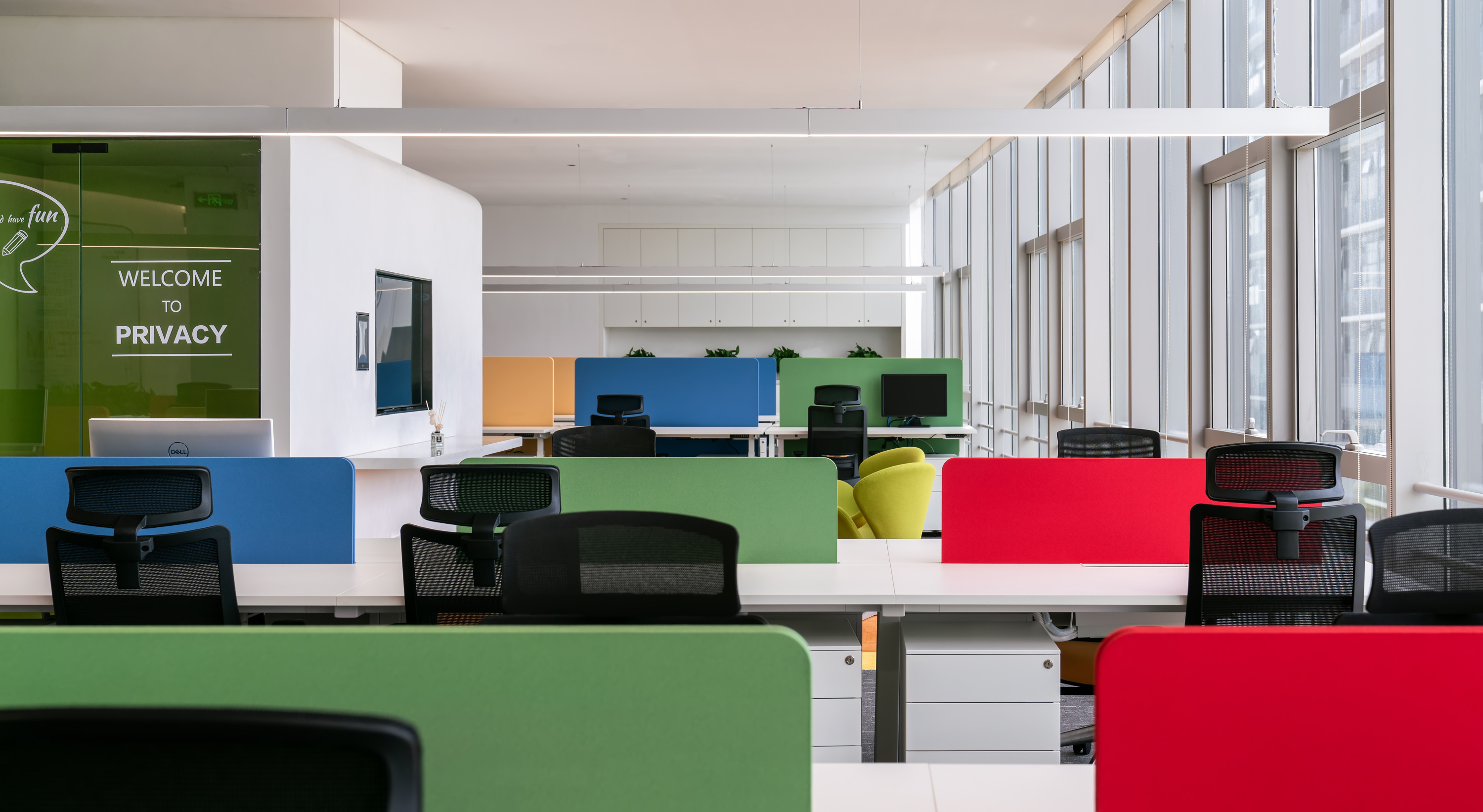 最好的都要留給伙伴們,對伙伴們的貼心融入到辦公室的每個細節。最好的景觀、最優的采光、通風透氣、冷氣口的出風角度設計,都用心至極,把伙伴當家人一樣。包括窗簾的選擇,為了不讓伙伴們在封閉的空間工作,我們對窗簾的嚴選要求既遮陽又透光,視野開闊,讓成員在工作之余可以與窗外風景互動,在緊張的工作中得到舒壓減壓的目的。