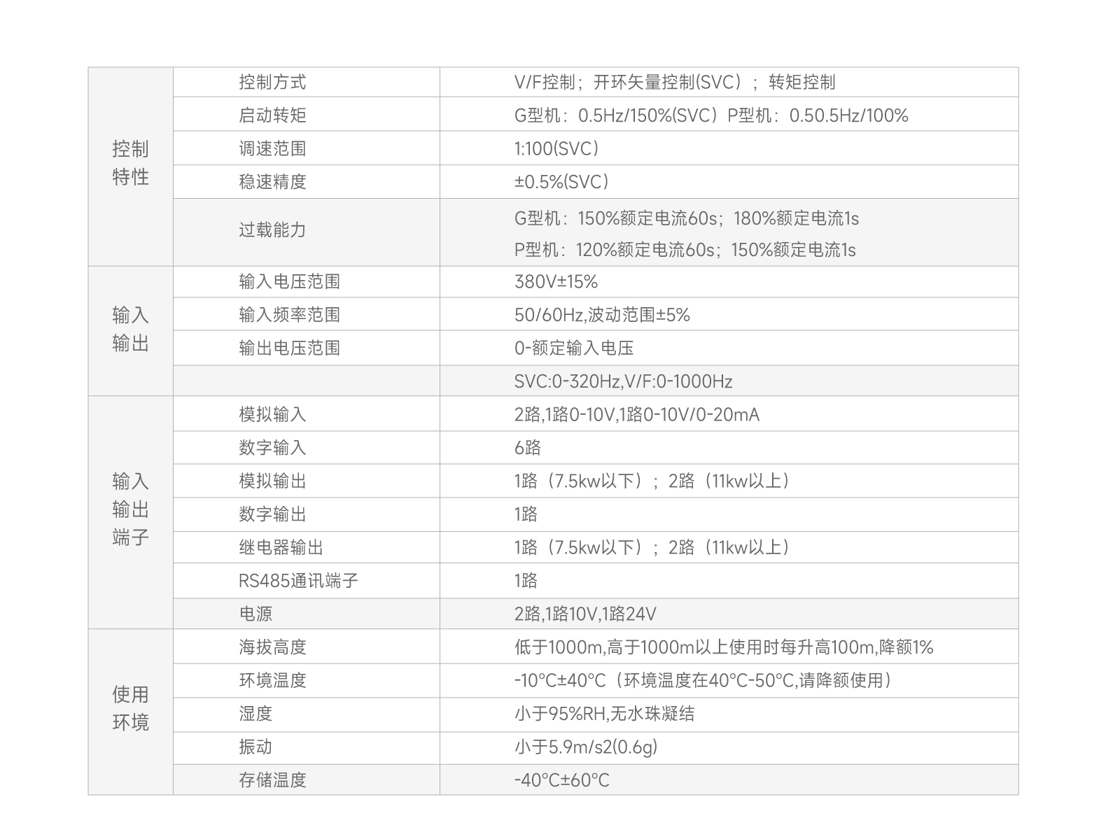 過勵磁制動功能, 實現快速制動。0.75-22kW內置制動單元